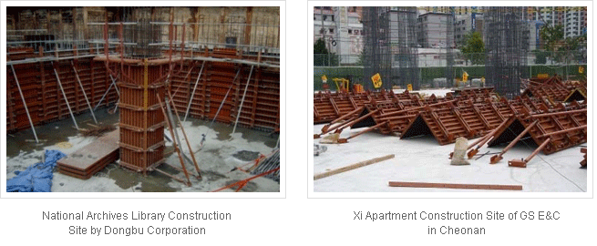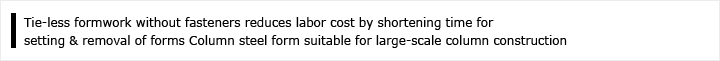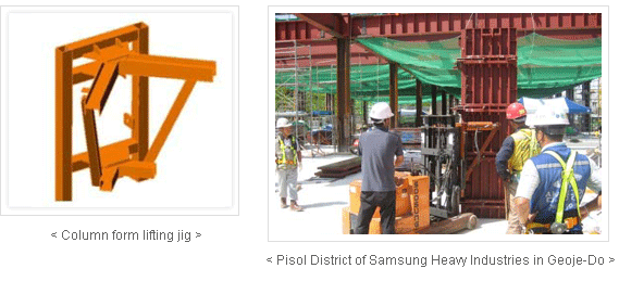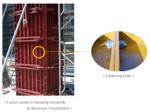 While the existing column formwork repeats the entire processes of assembly and dismantlement, the SB column steel form is a stable and rapid method because it repeats only the process needed to fasten and loosen the Dywidag bolts of the triangle connector.