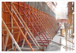 5. Easy adjustment of vertical alignment of plywood forms using the jack base attached to the brace frame.