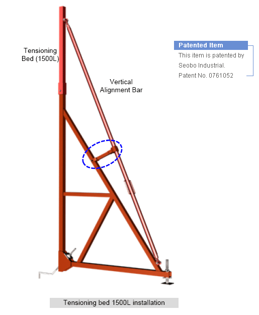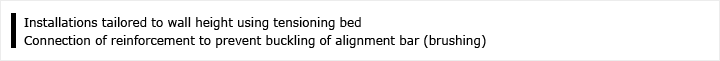 Connect tensioning bed to brace frame when wall height is over 3000H and support with alignment bar. Tensioning bed of