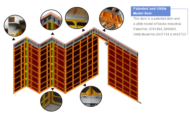 It is a wall form system of new concept, to assemble single support panel on multiple basic panels by raise-groove connection method. |
