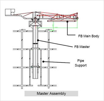 The SB-FB pours concrete by fixing a round master between the slabs and connecting concrete pipe. Because of ease in installation, dismantlement and operation, it is used for pouring concrete in multi-storied buildings such as apartment buildings or office buildings. |
